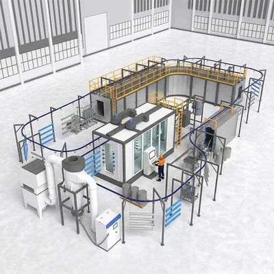 4.Moduläres und skalierbares Design: Das System besteht aus modularen Komponenten, darunter die Vorbehandlungstunnel, Pulverkabinen und Härteöfen,Erlaubt kundenspezifische Konfigurationen, die Ihren spezifischen Produktionsanforderungen und der Bodenfläche entsprechen.