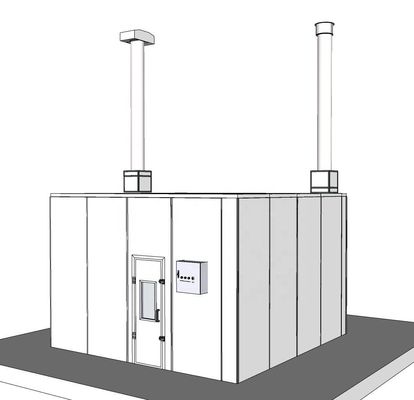 Die Luftzufuhr- und Abluftkanäle sind jeweils mit 3 Abschnitten von 400 x 400 x 1000 mm geraden Luftkanälen, 1 Abschnitte von 4 00 x 4 00 mm 90° Ellenbogen und 1 Abschnitte von 4 00 x 4 00 mm 45° Ellenbogen ausgestattet. |