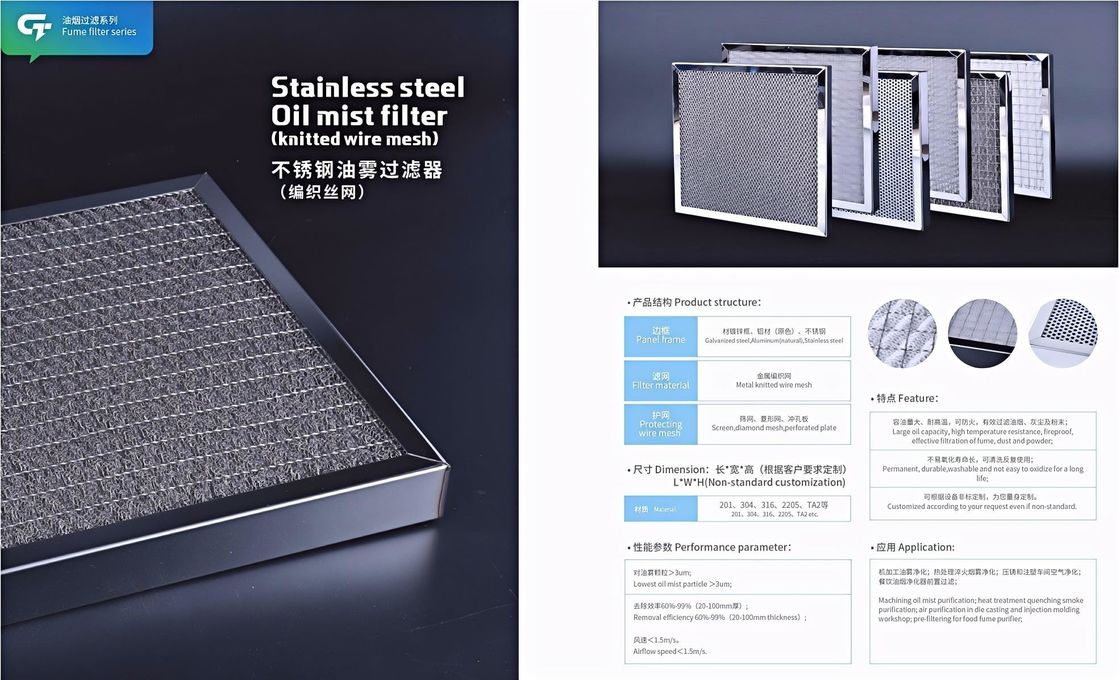 Unser hochwertiger Ölnebelfilter, aus Edelstahl, ist für industrielle Effizienz konzipiert.und feuerfeste Fähigkeiten. Anpassbar an Ihre Abmessungen und Materialpräferenzen (201, 304, 316, 2205, TA2), gewährleistet eine optimale Leistung mit einer Entfernungseffizienz von 60%-99%.und Luftreinigung.