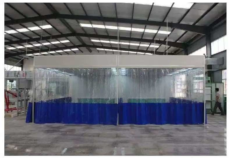 PVC-Vorhang-GehäuseIm Gegensatz zu einer festen Kabine verwendet die Vorbereitungsstation verschiebbare PVC-Vorhänge.